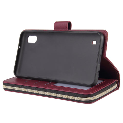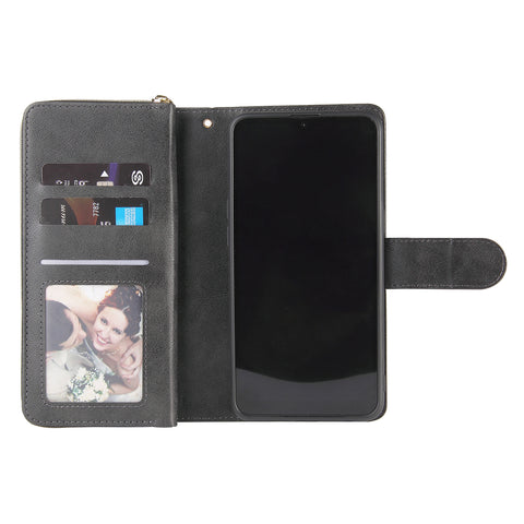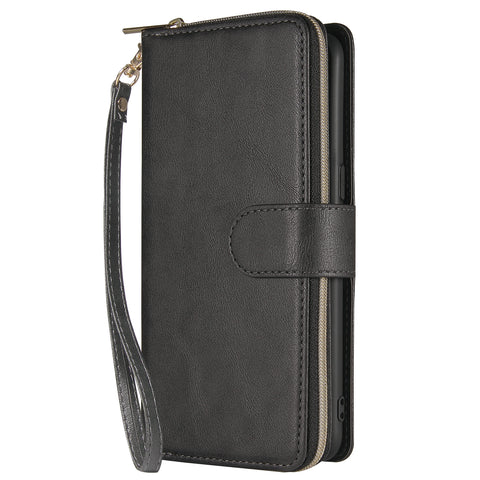 For Samsung A10/A20/A30/A50/A30S/A50S Pu Leather Mobile Phone Cover Zipper Card Bag + Wrist Strap black