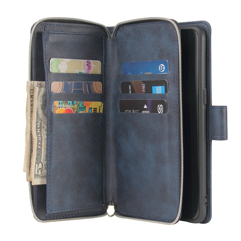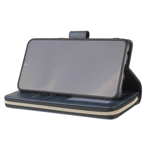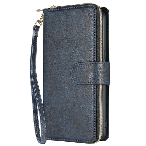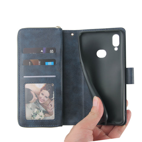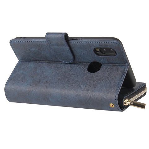 For Samsung A10/A20/A30/A50/A30S/A50S Pu Leather Mobile Phone Cover Zipper Card Bag + Wrist Strap blue