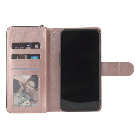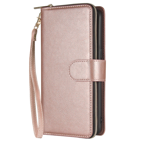 For Samsung A10/A20/A30/A50/A30S/A50S Pu Leather Mobile Phone Cover Zipper Card Bag + Wrist Strap Rose gold