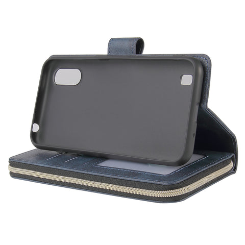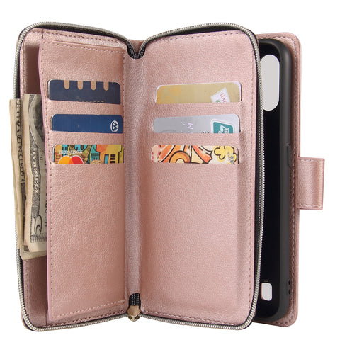 For Samsung A01/A21/A31/A41/A51 Pu Leather  Mobile Phone Cover Zipper Card Bag + Wrist Strap Rose gold