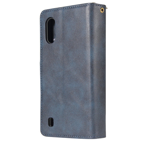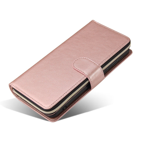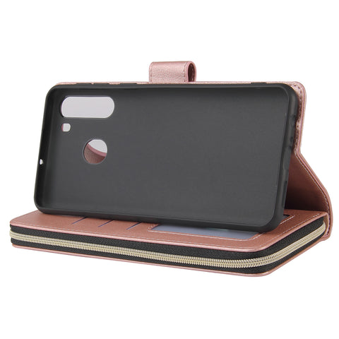 For Samsung A01/A21/A31/A41/A51 Pu Leather Mobile Phone Cover Zipper Card Bag + Wrist Strap Rose gold