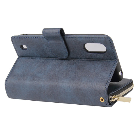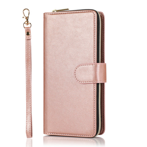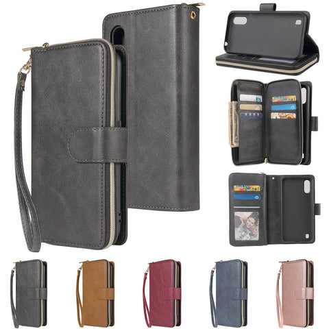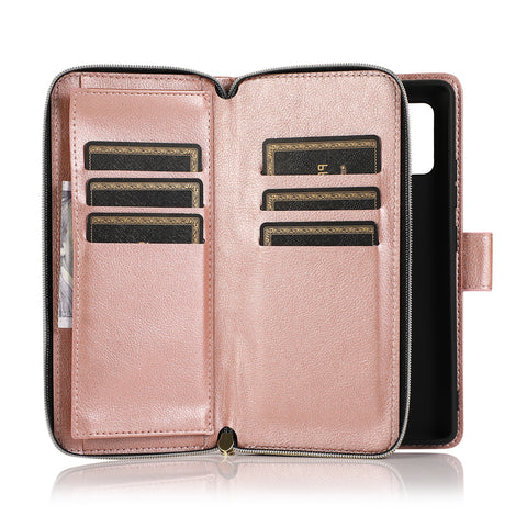 For Samsung A01/A21/A31/A41/A51 Pu Leather Mobile Phone Cover Zipper Card Bag + Wrist Strap Rose gold