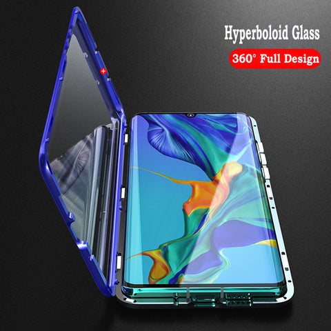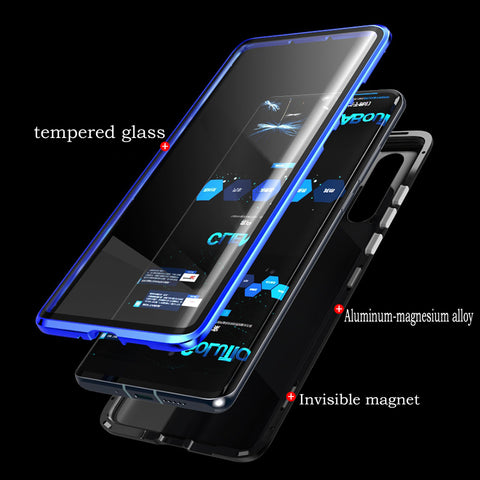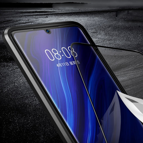 For Huawei P30 Pro/P30 Lite/P30 Front Back Glass Cover Luxury Aluminum Metal Magnet Adsorption Phone Case black_Huawei P30 lite