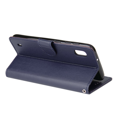 For Samsung A10 Flip-type Leather Protective Phone Case with 3 Card Position Buckle Design Phone Cover blue