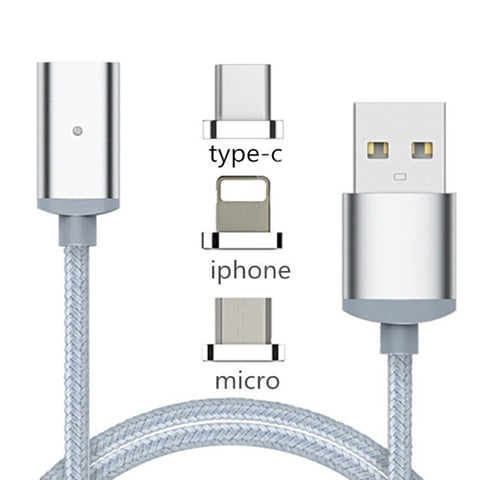 Magnetic Cable 2.4A USB Type C Data Charger 1M Nylon Metal Fast Charging Magnet Cable For Samsung Xiaomi Huawei Android Mobile Phone Silver