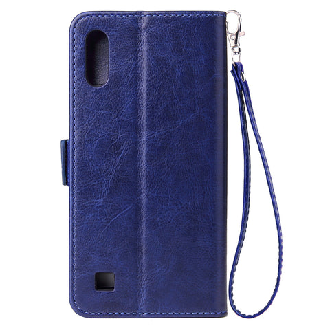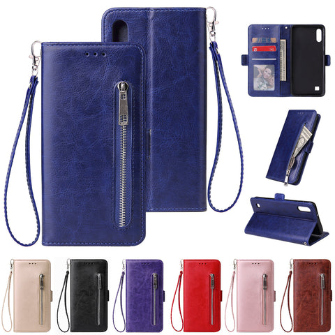 For Samsung A10 Solid Color PU Leather Zipper Wallet Double Buckle Protective Case with Stand & Lanyard gold