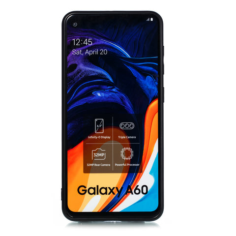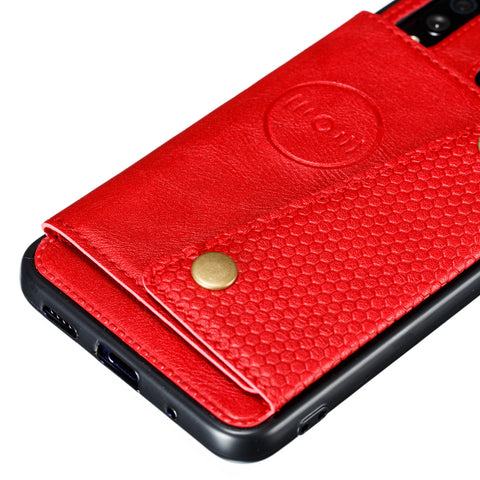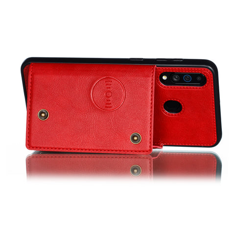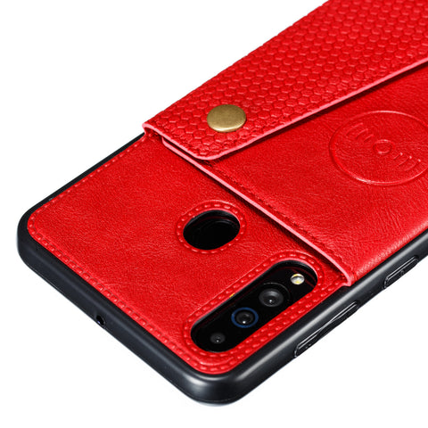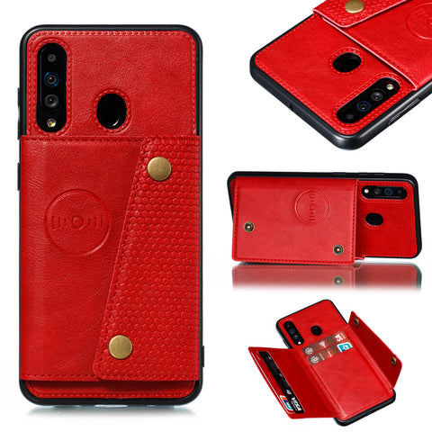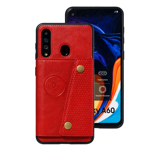 For Samsung A60 Double Buckle Non-slip Shockproof Cell Phone Case with Card Slot Bracket Light Brown