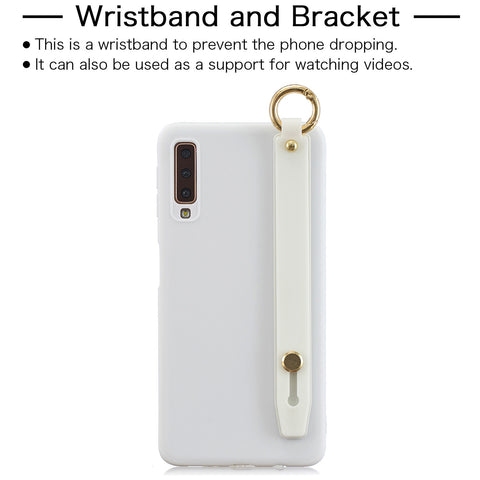 For Samsung A7 2018 Simple Solid Color Chic Wrist Rope Bracket Matte TPU Anti-scratch Non-slip Protective Cover Back Case 8 light blue