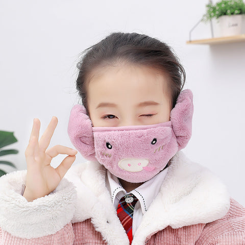 2-in-1 kid warm plush mask and earmuffs, wrap your face and ears, perfect to wear in autumn and winter.