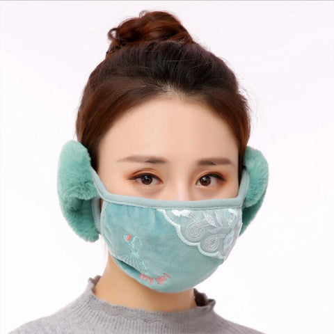 Men Women 2 in 1 Winter Fashion Warm Lace Protect Ears Cycling Windproof Anti-Dust Mouth Face Mask Pink