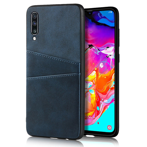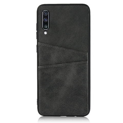 For Samsung A70 Cattlehide Grain PU Protective Case Back Cover with 2 Cards Pockets Dark brown